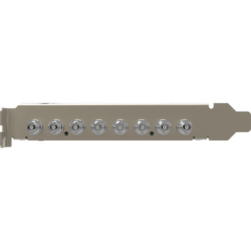 Multiple of these low-profile cards can be plugged into a single host, with an on-board rotary switch allowing you to set the card number. Video engine features include 10-bit video processing, deinterlacing, cropping, color adjustment, hardware timestamp, color space conversion, up/down conversion, aspect ratio conversion, OSD, and SG-DMA transmission mode. The card can be run continuously for 24 hours a day, seven days a week.
