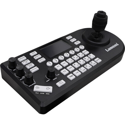 Control up to 255 IP PTZ cameras with the VS-KB21 IP PTZ Camera Controller from Lumens. This controller is designed to operate across multiple camera protocols on an IP network via VISCA-over-IP, and VISCA over RS-232/422 serial protocols. It can be powered using a power adapter or via PoE (Power-over-Ethernet) on a supported network.
